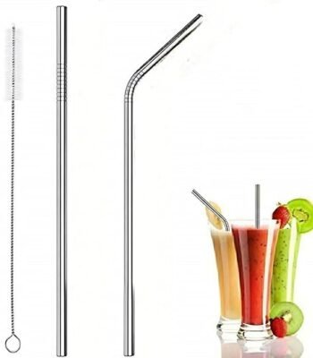 Kids and Adults Metal Straw Set with Cleaning Brush Long Steel Stainless Steel