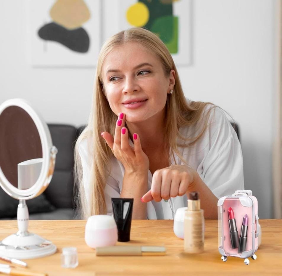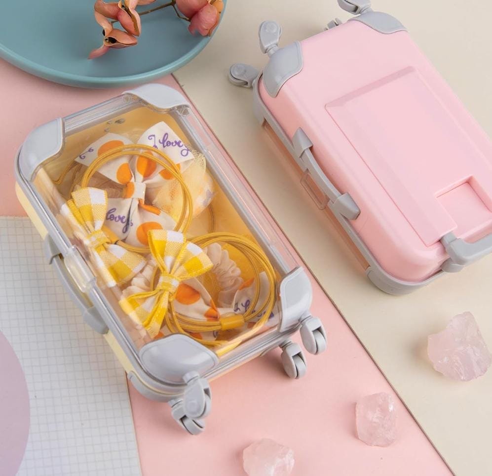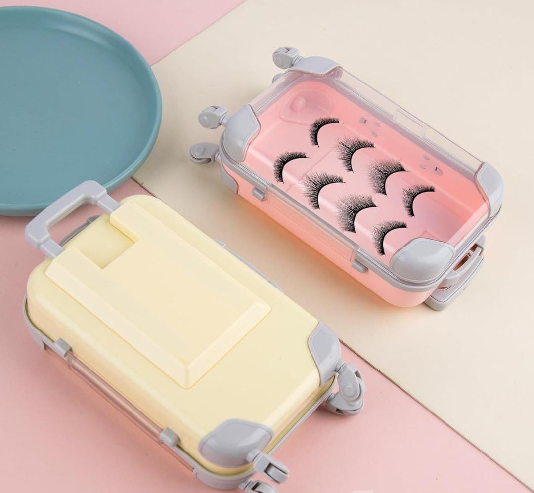 【Design】False eyelashes packaging box adopts up and down telescopic handle, rotatable roller, smooth and not stuck, simulation buckle and portable design, which looks like a real suitcase