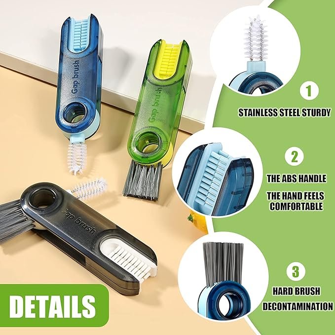 - 【3 in 1 cleaning brush】 new style 3 in 1 cleaning brush, respectively, including blue brush, gray brush, green brush three, a brush three uses, to bring you a new cup cleaning experience, good quality products, fine workmanship, compact size and easy to clean.