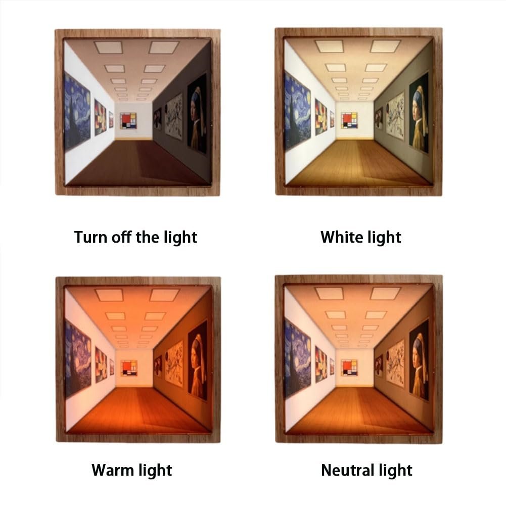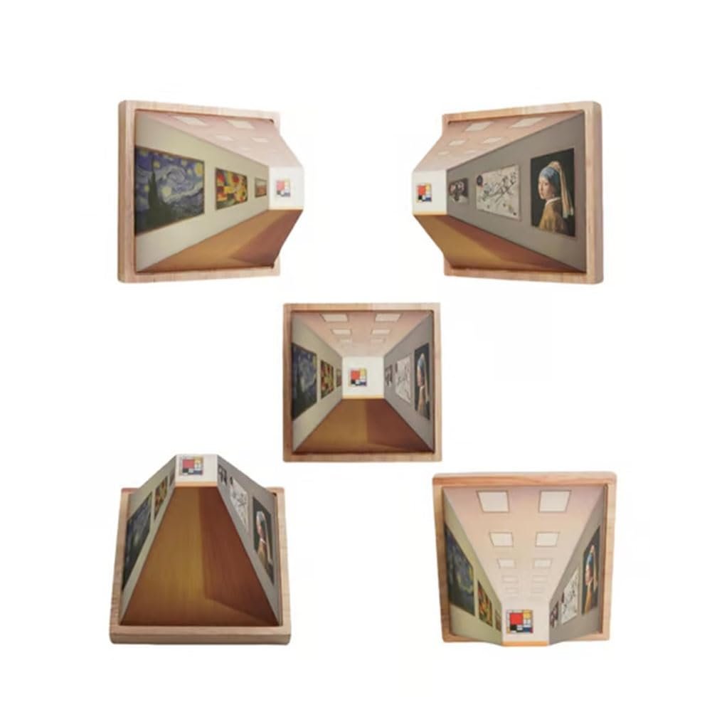 Add a touch of creativity and elegance to your space with this 3D optical illusion wall art, designed to resemble a realistic mini art gallery. Crafted in a unique shadow box frame, this decorative piece gives the illusion of depth, making it appear like a hallway filled with iconic museum wall art such as Girl with a Pearl Earring, Starry Night, and more.