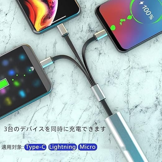 - (Highly Durable) This 3-in-1 charging cable is made with an acco-core that is extremely durable and not only luxurious, but also improves quality. The cable is made of high quality TPE which is flexible and durable. Easy to carry, prevents tangles, and is soft and difficult to disconnect. Even after bending over tens of thousands of times, there was no performance damage or change