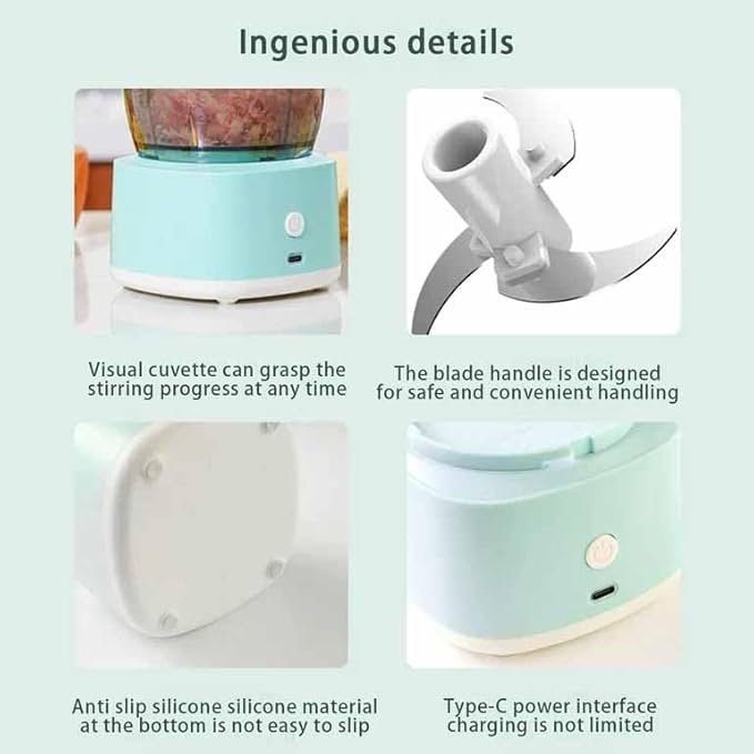 - 4. USB Rechargeable Garlic Chopper: As a lightweight electric mini chopper is perfect for small jobs, like chopping garlic, ginger, peppers, meat, vegetables, onions, nuts and more, charge by USB. You could use it chop food into smaller pieces. As the chop time longer, the food will be smaller and smaller.