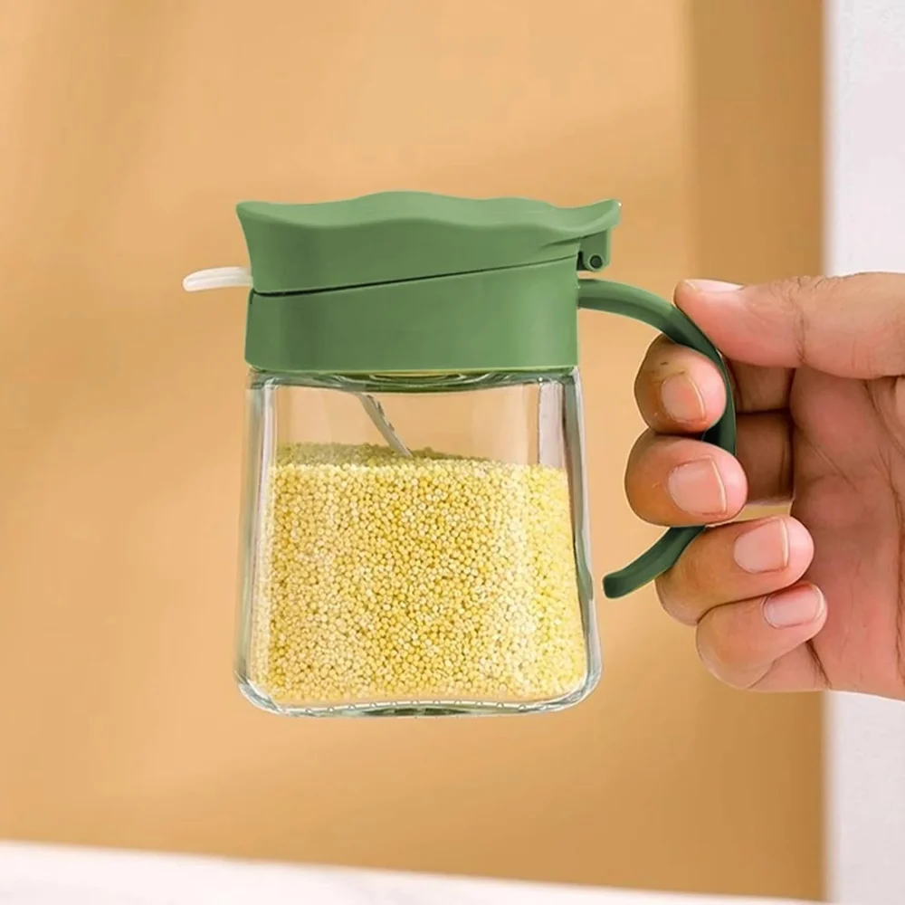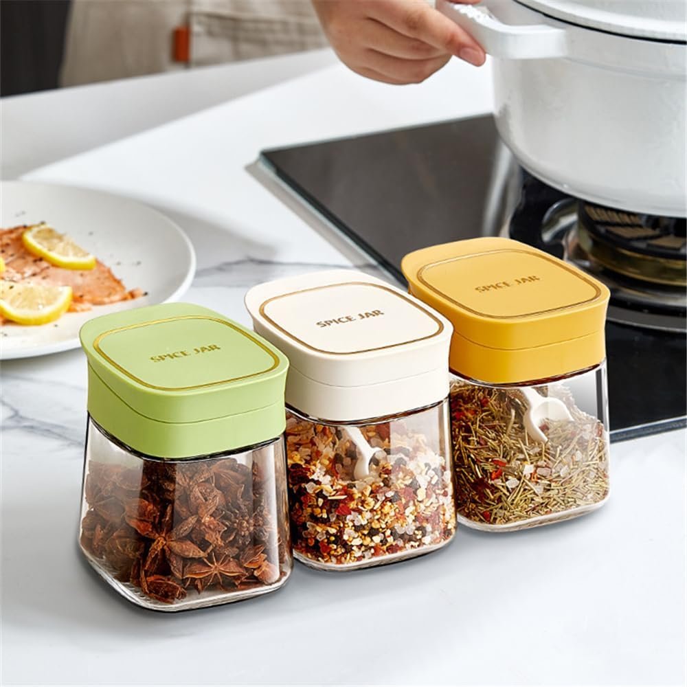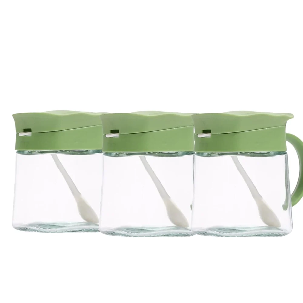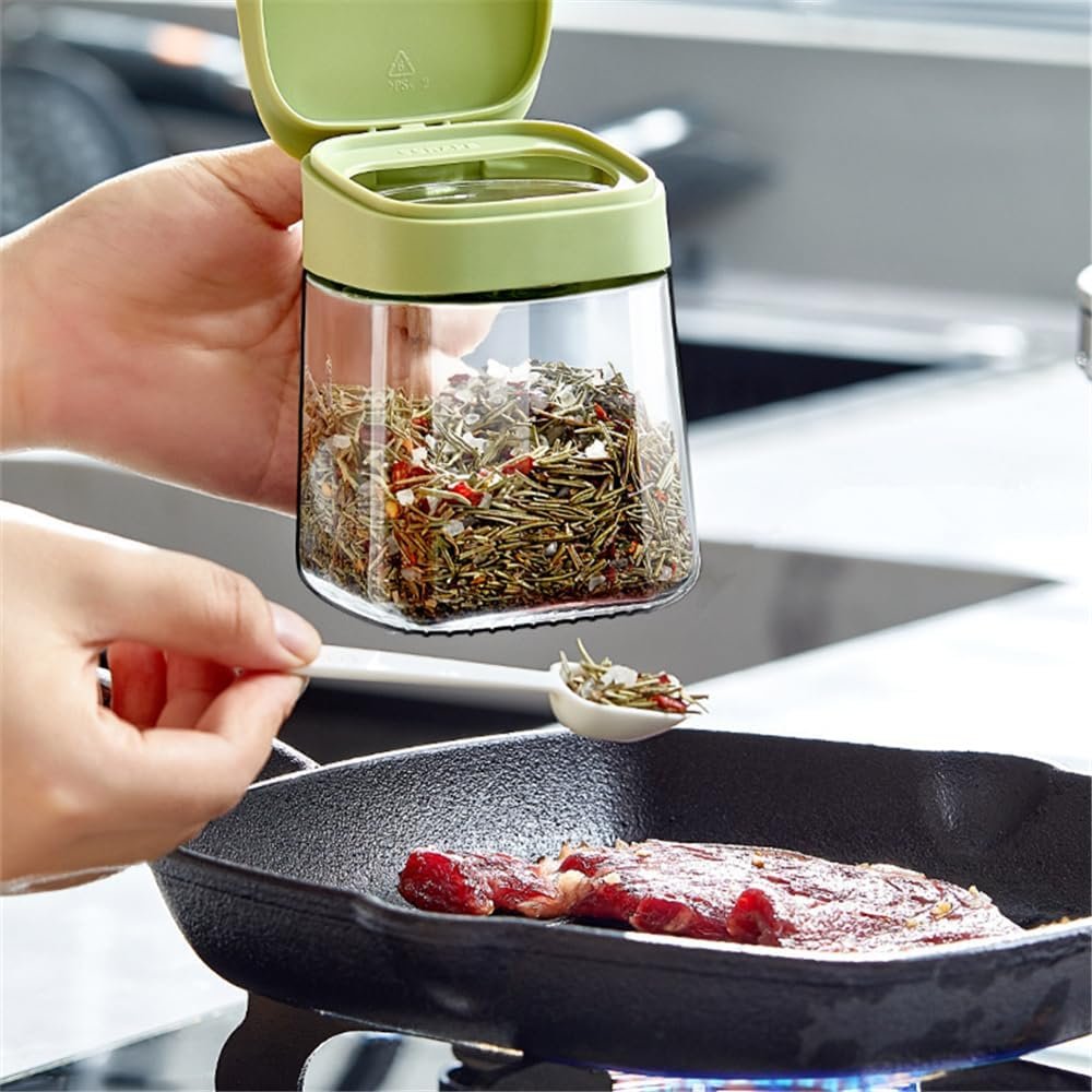 - Plastic lids and spoons are very useful, 350ml seasoning can be placed to meet the daily needs of the family. clever design adds a spoon to each jar, the flip-top design is very practical and it also protects against dust and moisture.