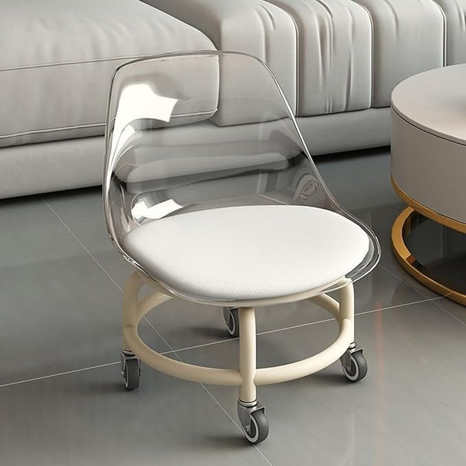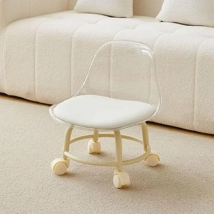 Stylish & Space-Saving Design: Cream-colored acrylic chair with a transparent, modern look—perfect for kids’ rooms, study areas, or play spaces.