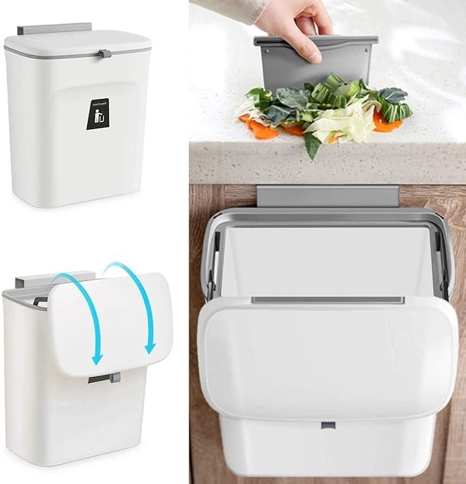 - EASY & FLEXIBLE INSTALLATION: PILITO hanging trash bin comprises a plastic pasting board for the hook-up design adopted on the back of the bin. It can be hung on the cabinet door/under the sink, on the wall using the pasting board, or directly put on the counter top or the ground.