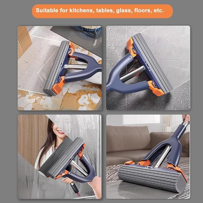 - POWERFUL ABSORPTION: The sponge mop head is designed with multiple rows of grooves, soft and absorbent, good at absorbing stains, food crumbs, dust, and can instantly absorb liquids without leaving watermarks, for a complete cleaning!