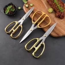 high-quality stainless steel, these golden scissors offer sharp, durable blades and comfortable, ergonomic handles. Designed for both function and style, they’re ideal for kitchen tasks like cutting meat, herbs, or even cracking nuts and opening bottles.