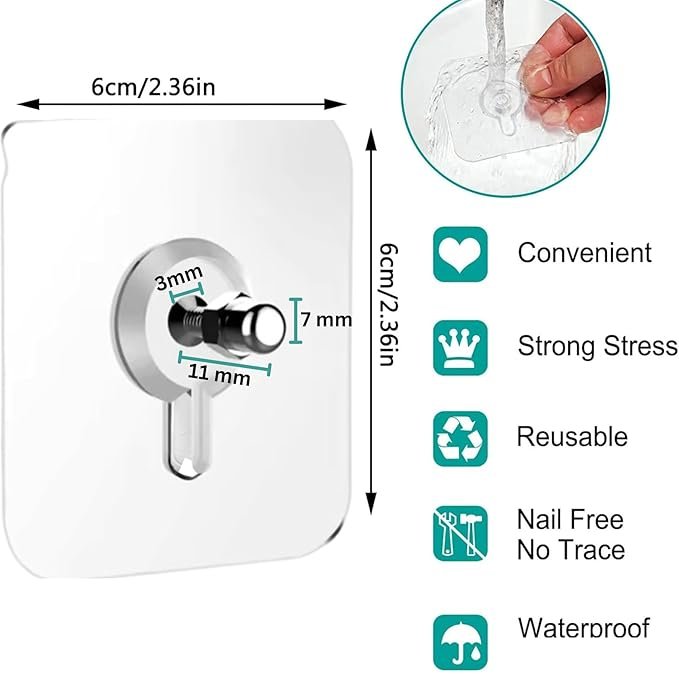 - Versatility: These hooks are durable and versatile, and even though they only measure 6 by 6 centimetres, they can support up to 10 kg of weight on smooth surfaces. For longevity, it is recommended to hang goods weighing less than 5 kg.