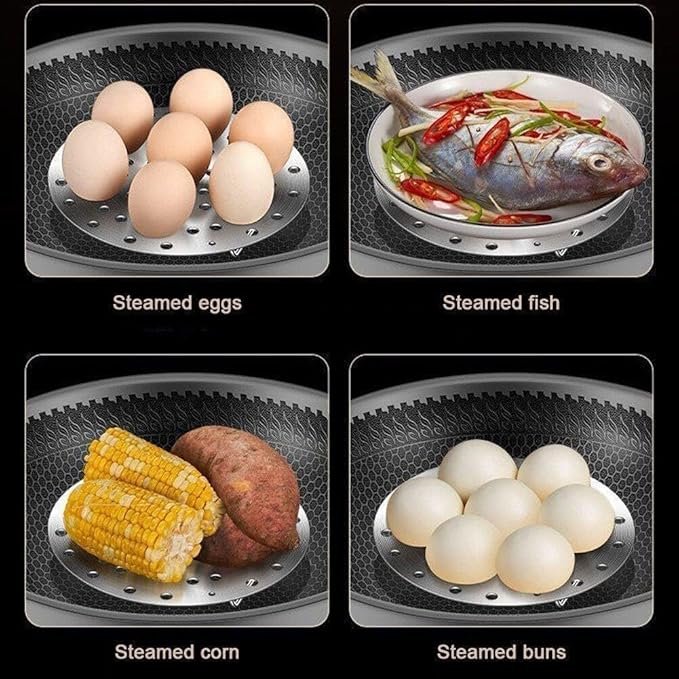 - Widely used: Just put the dish on the steaming tray, such as crab, bread, fish, meat, potatoes, corn, peanuts, dumplings or anything you want to steam, it can prevent the flavors from mixing during cooking. A thicker steel ring is more stable and can bear more weight.